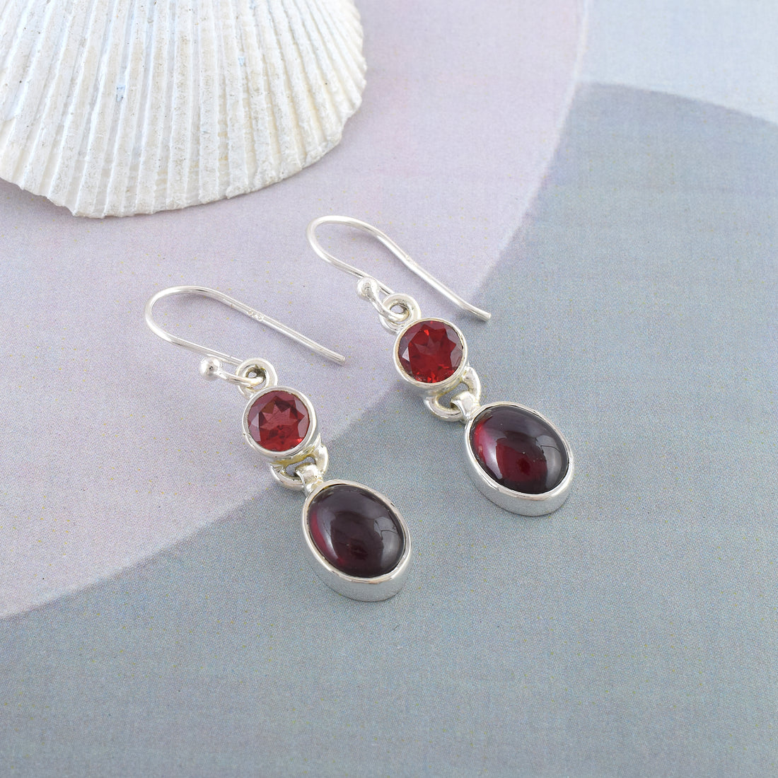 Natural Red Garnet Dual-Stone Silver Earrings