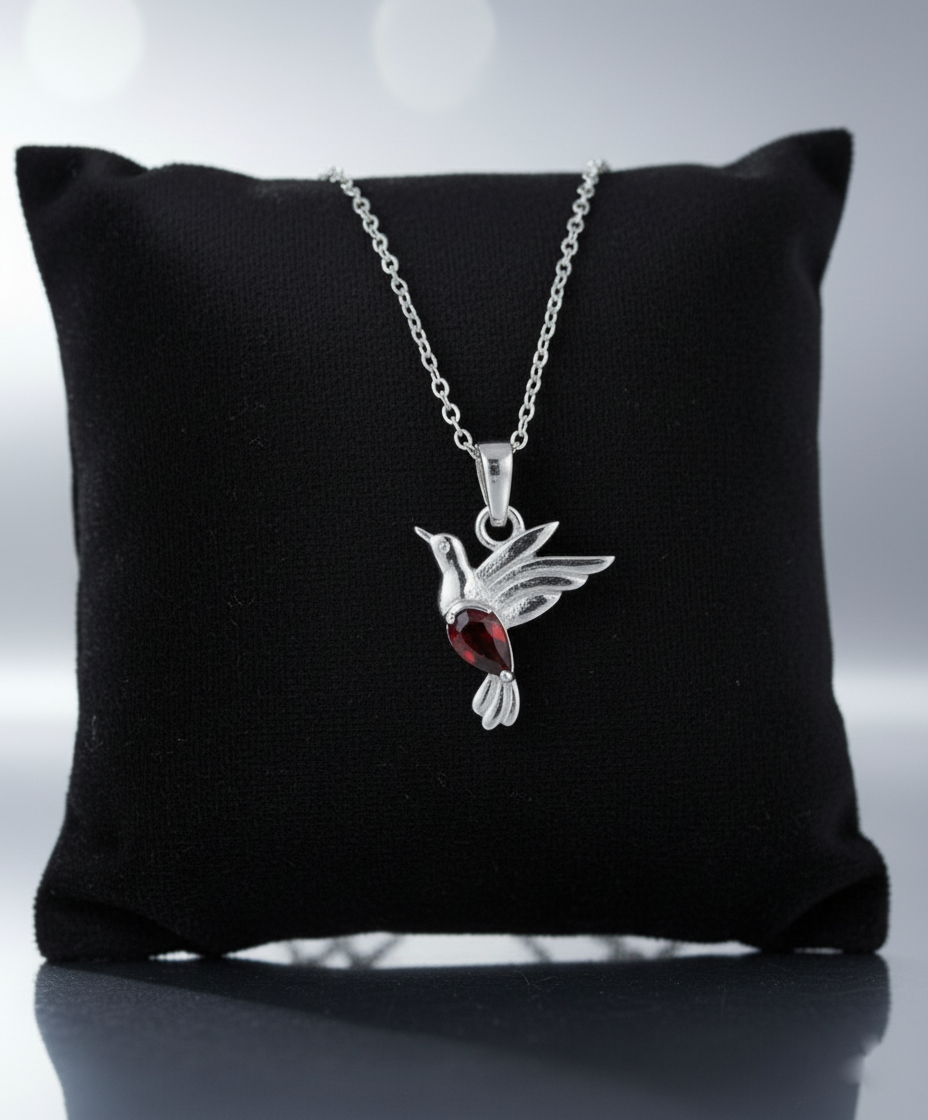 Red Garnet Pear-Cut Bird Pendant