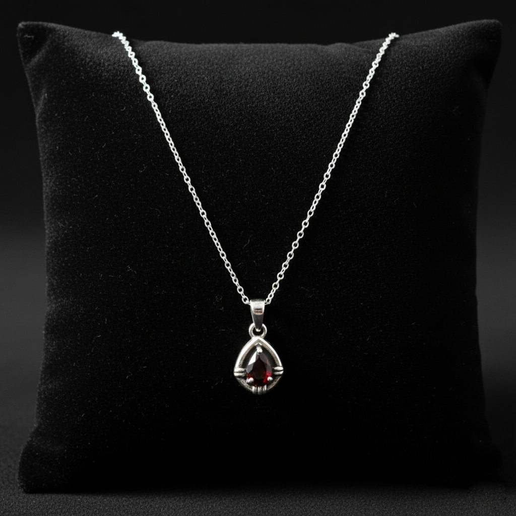 Natural Garnet Silver Pendant