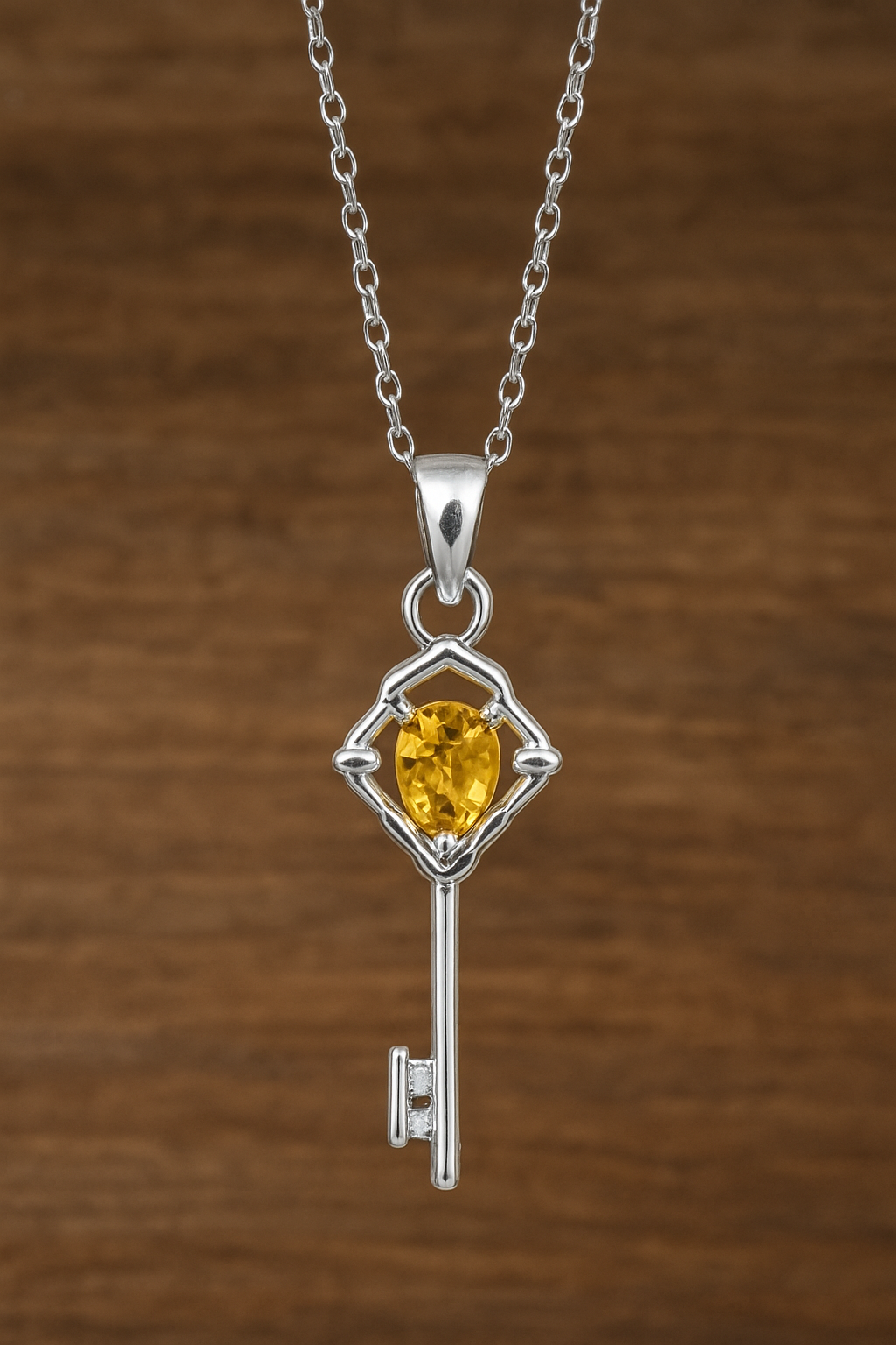 Blue Topaz Pear-Cut Solitaire Key Pendant