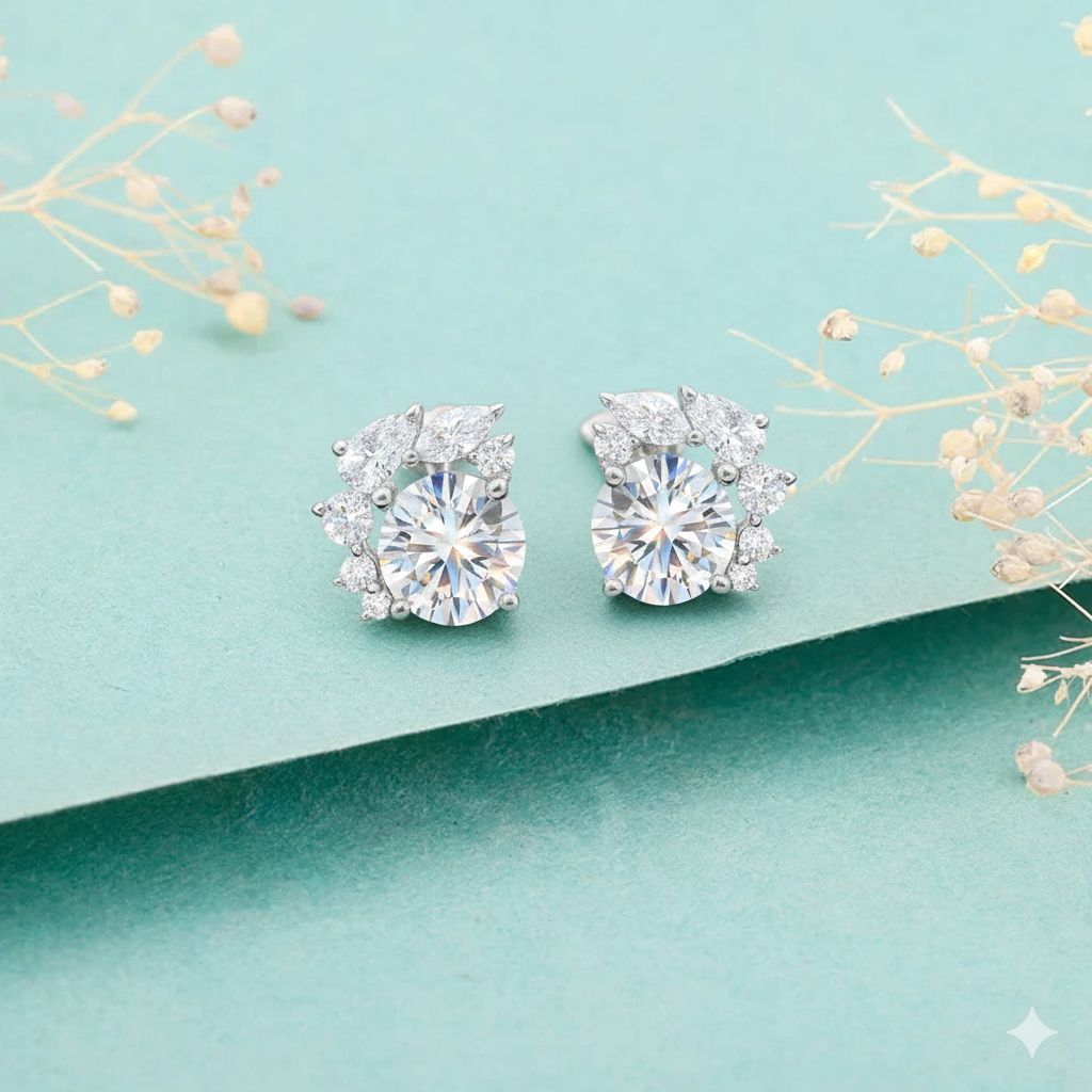 Elegant American Diamond Floral Studs