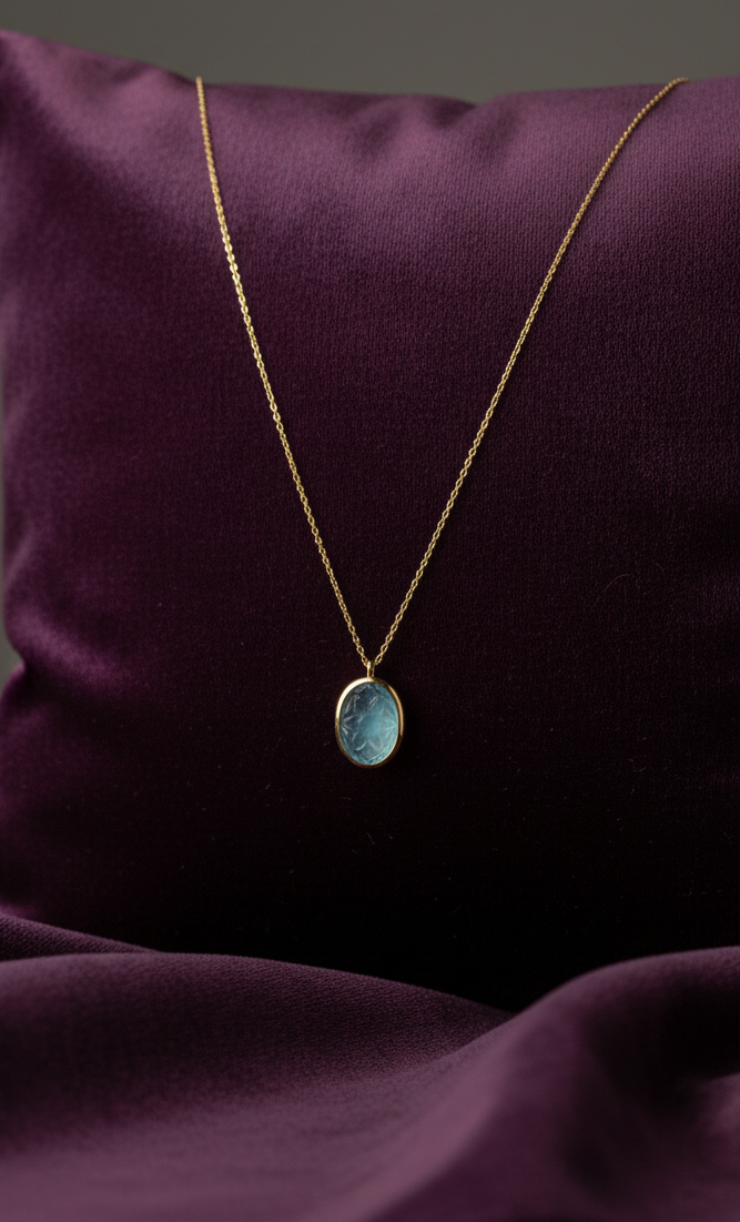 Carved Green Tourmaline Gold Plated Pendant