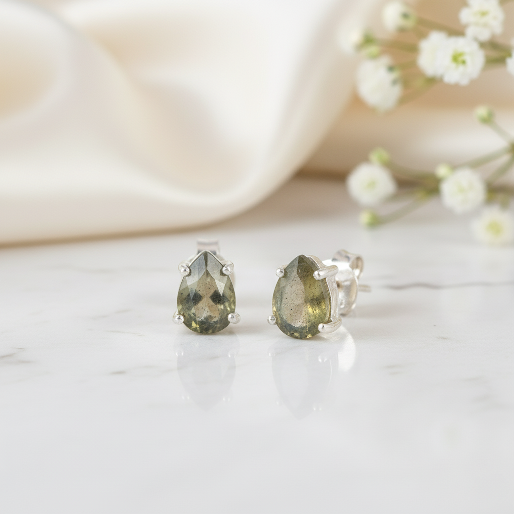 Labradorite Pear Shape Stud Earring
