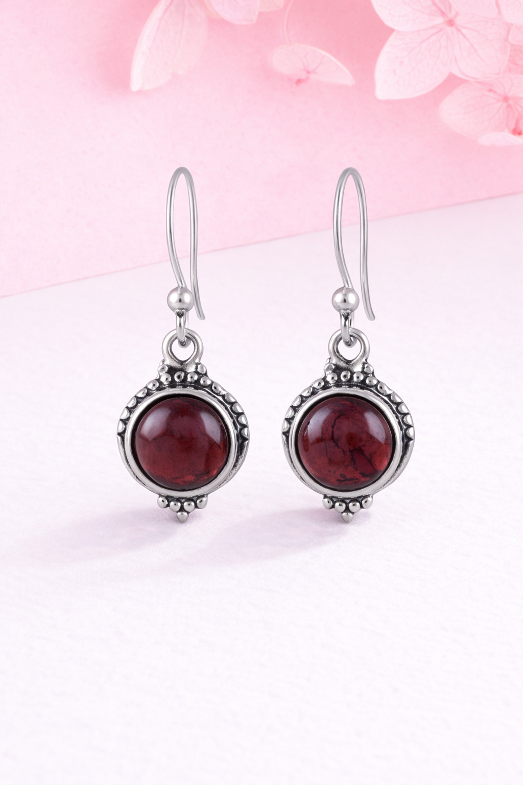 Deep Red Garnet Silver Dangle Earring