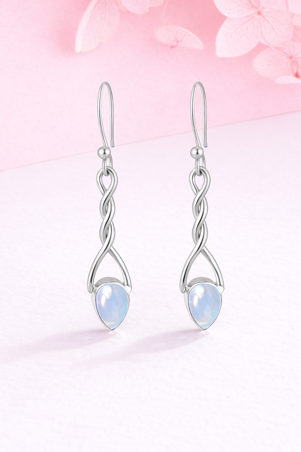 Labradorite Silver Twisted Teardrop Earrings