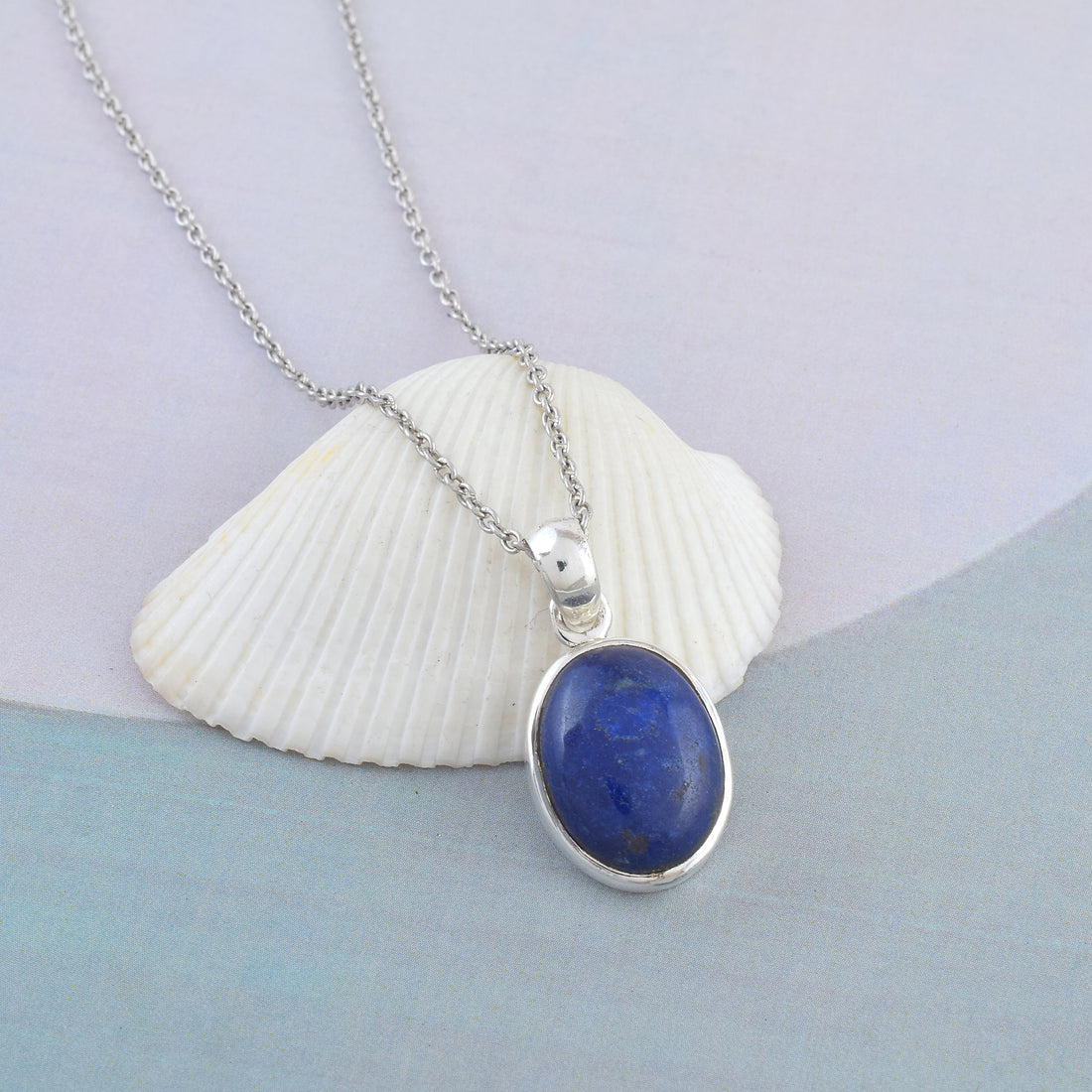 Oval Blue Lapis Silver Necklace