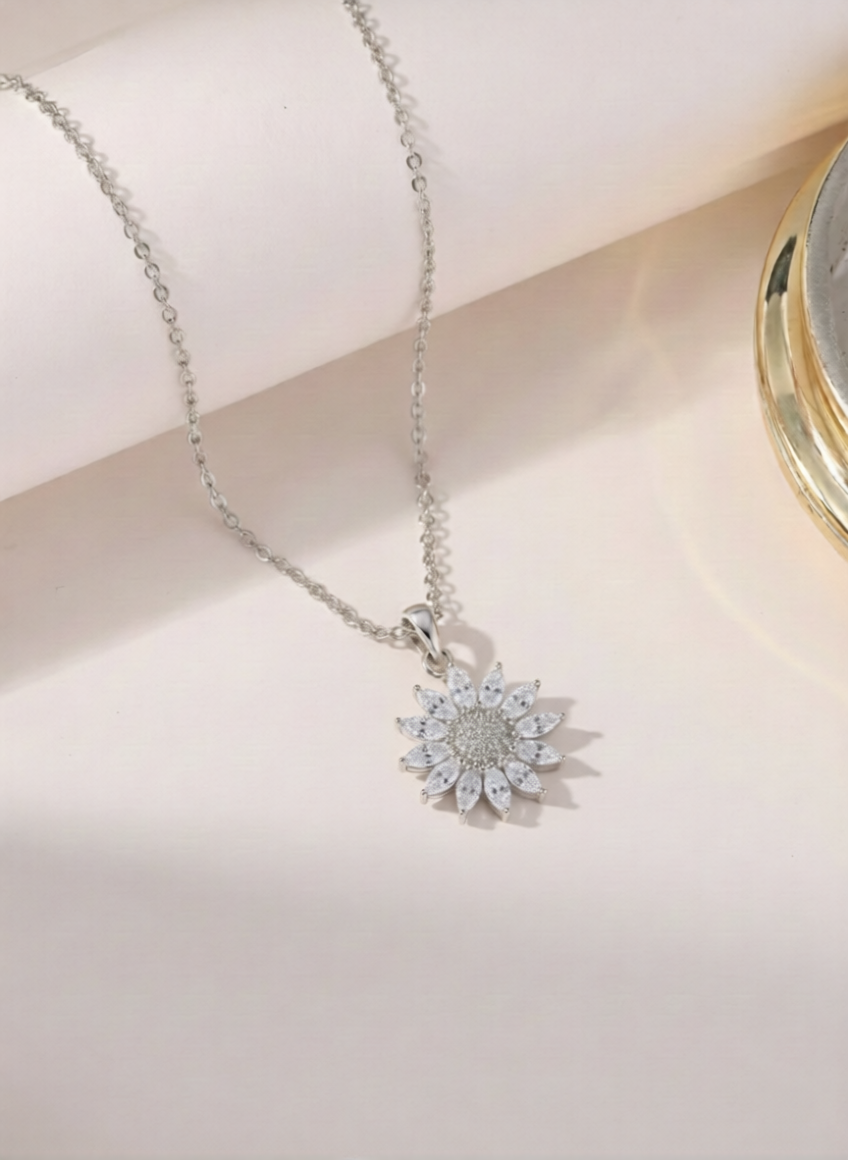 Sparkling CZ Sunflower Pendant