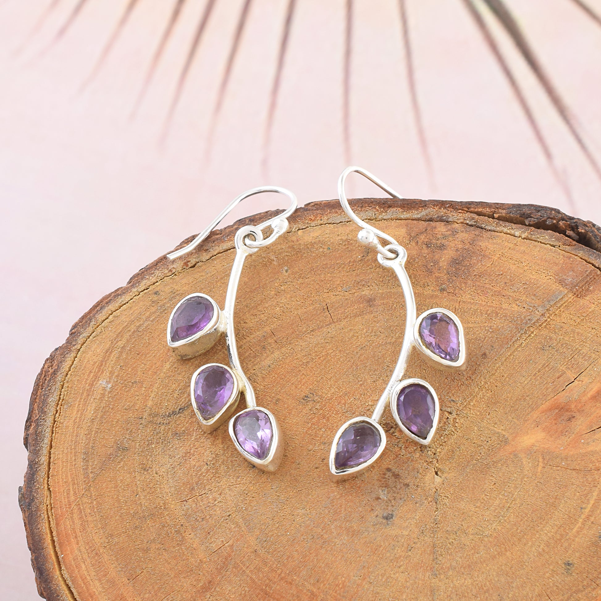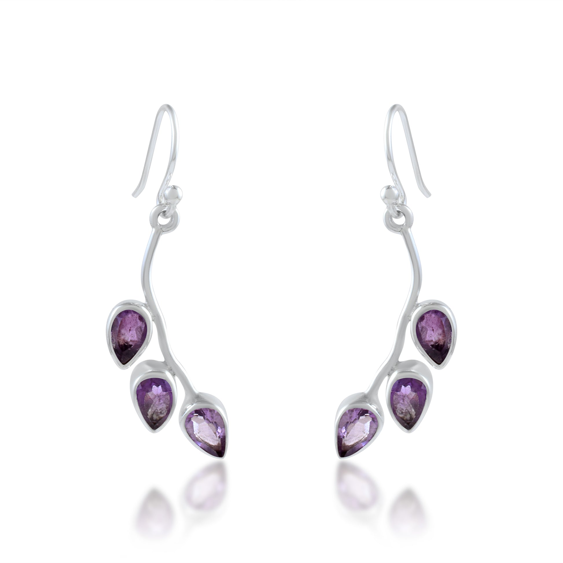 Amethyst Three-Stone Leaf Vine Drops