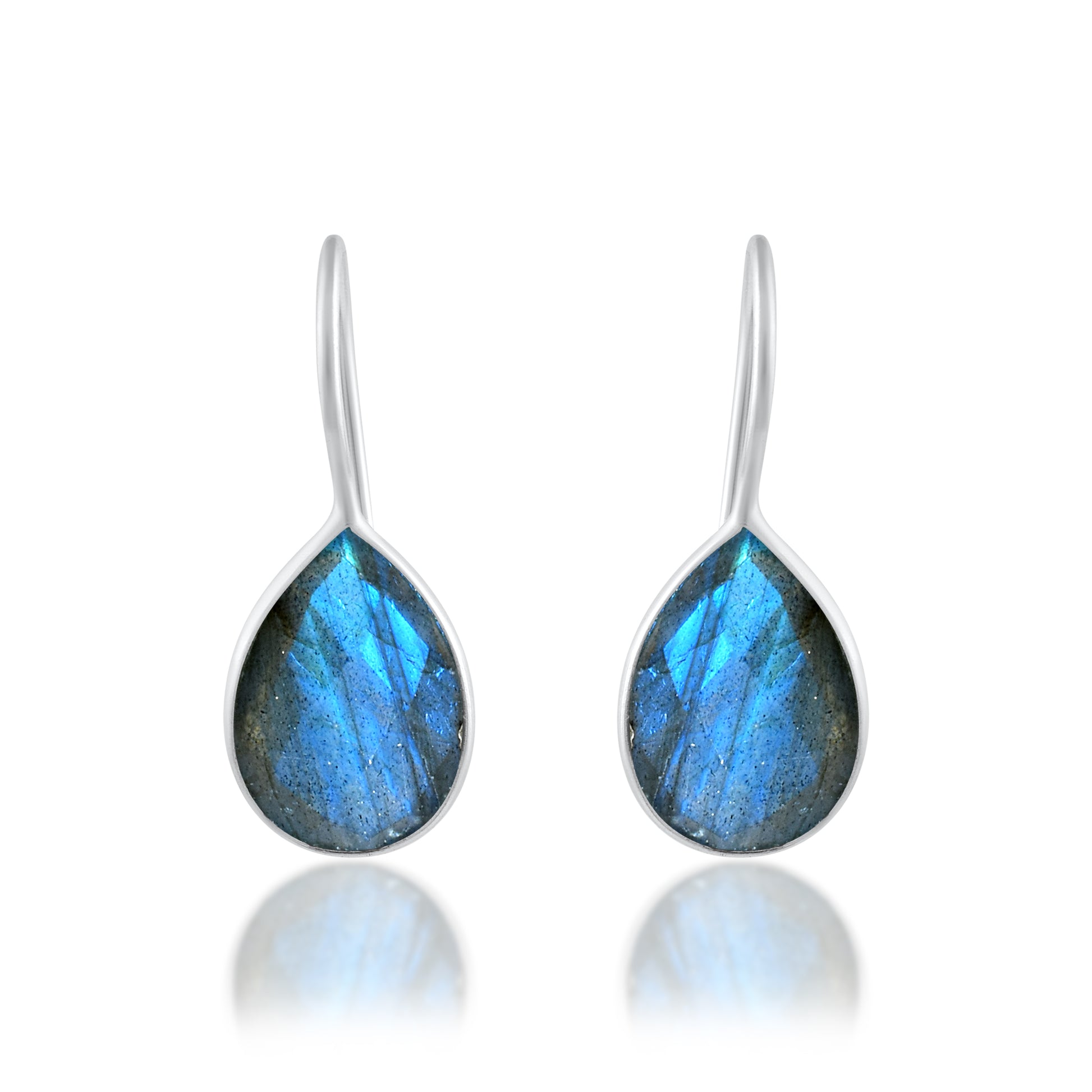 Blue Stone Teardrop Silver Dangle Earrings