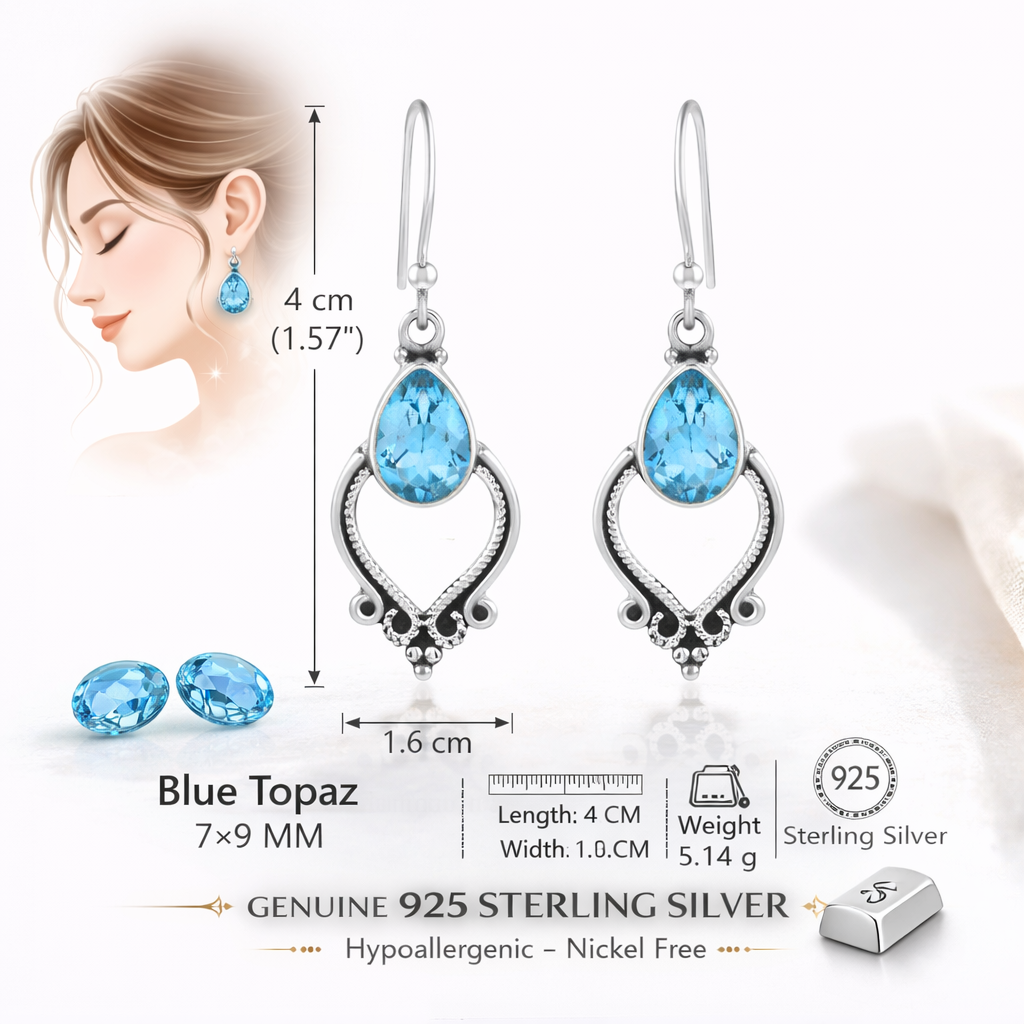 Blue Topaz Gemstone Earrings