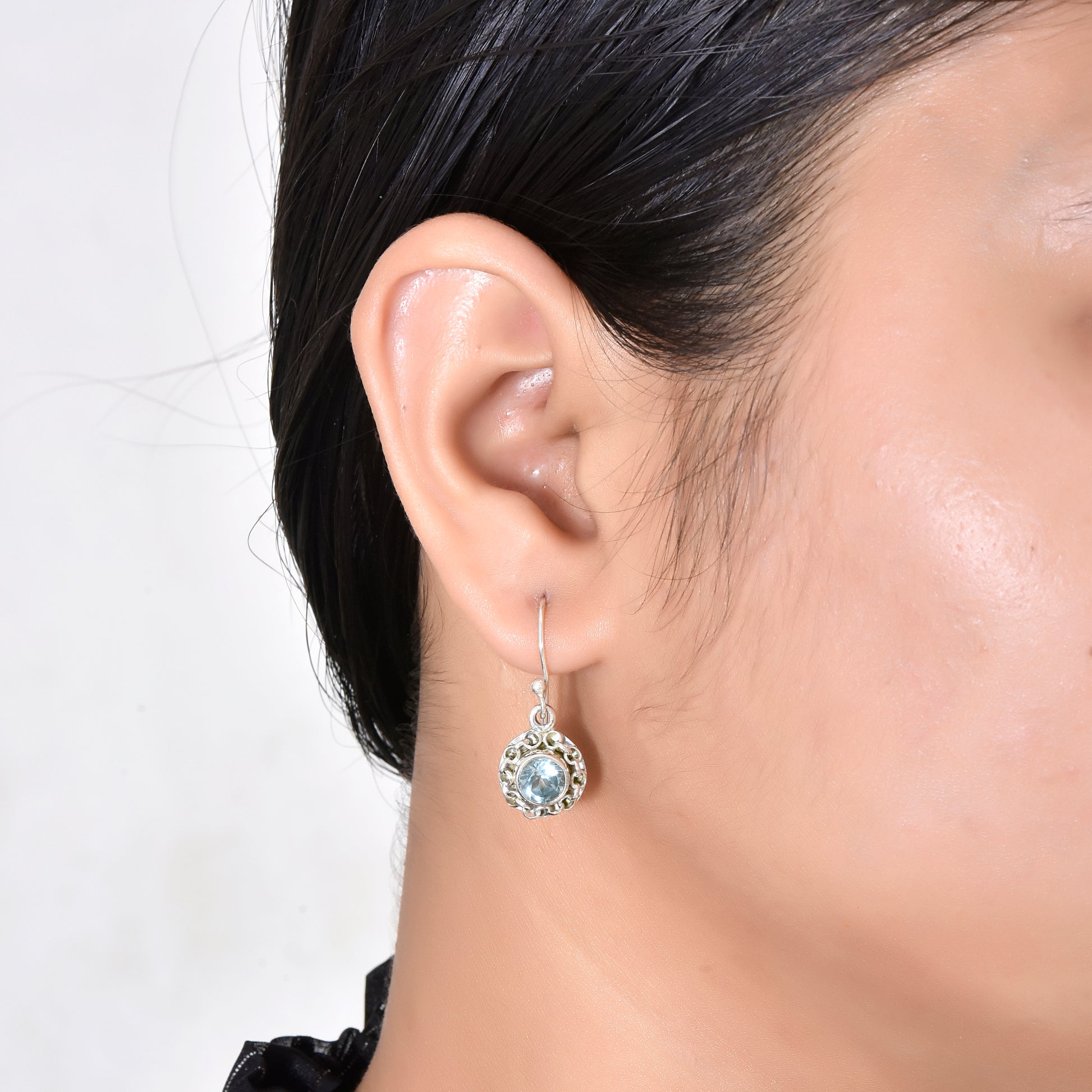 Blue Topaz Solitaire Dangle Earrings