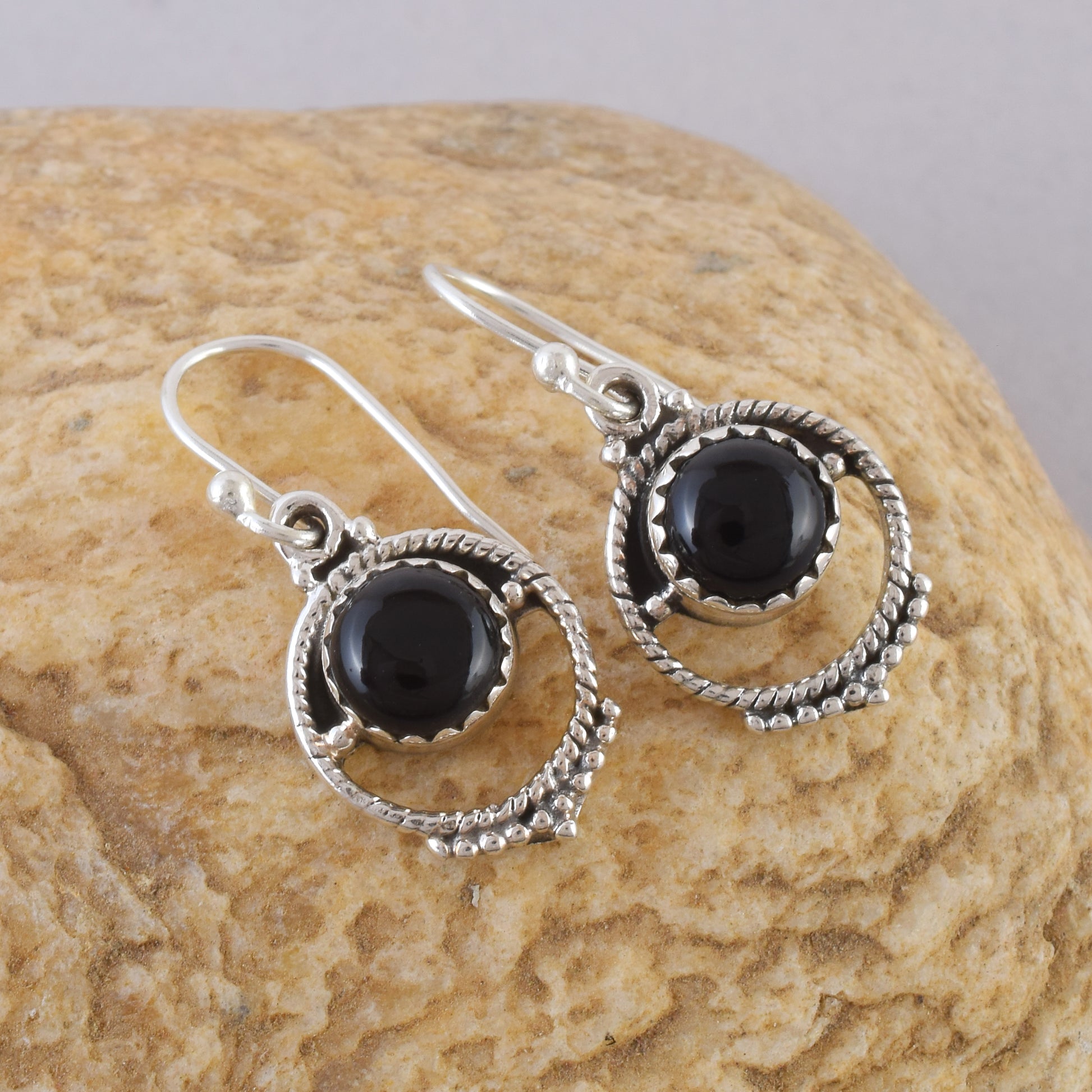 Ethnic Black Onyx Round Dangle Earrings