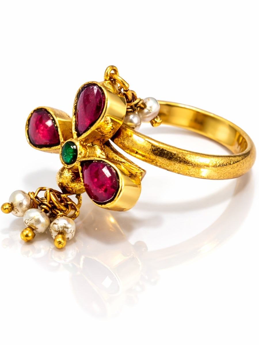 Ethnic Multi-Stone Floral Kundan Ring