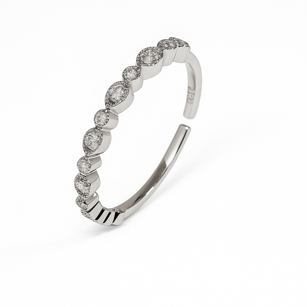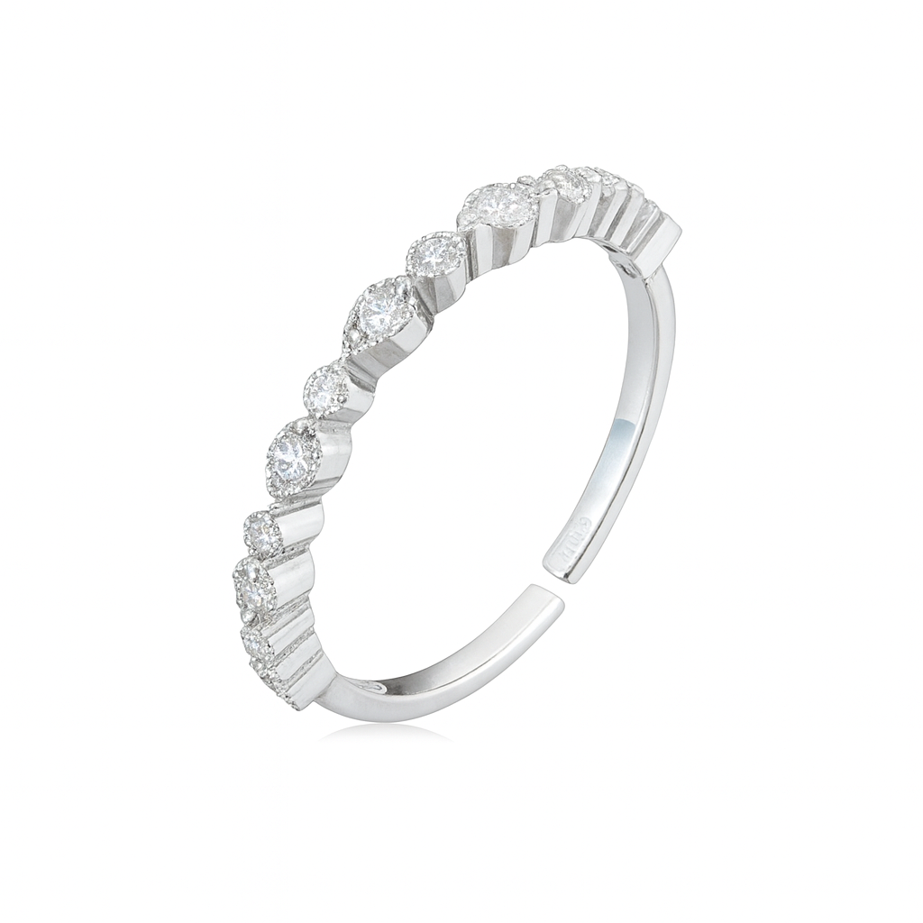 Mixed-Shape CZ Silver Adjustable Ring