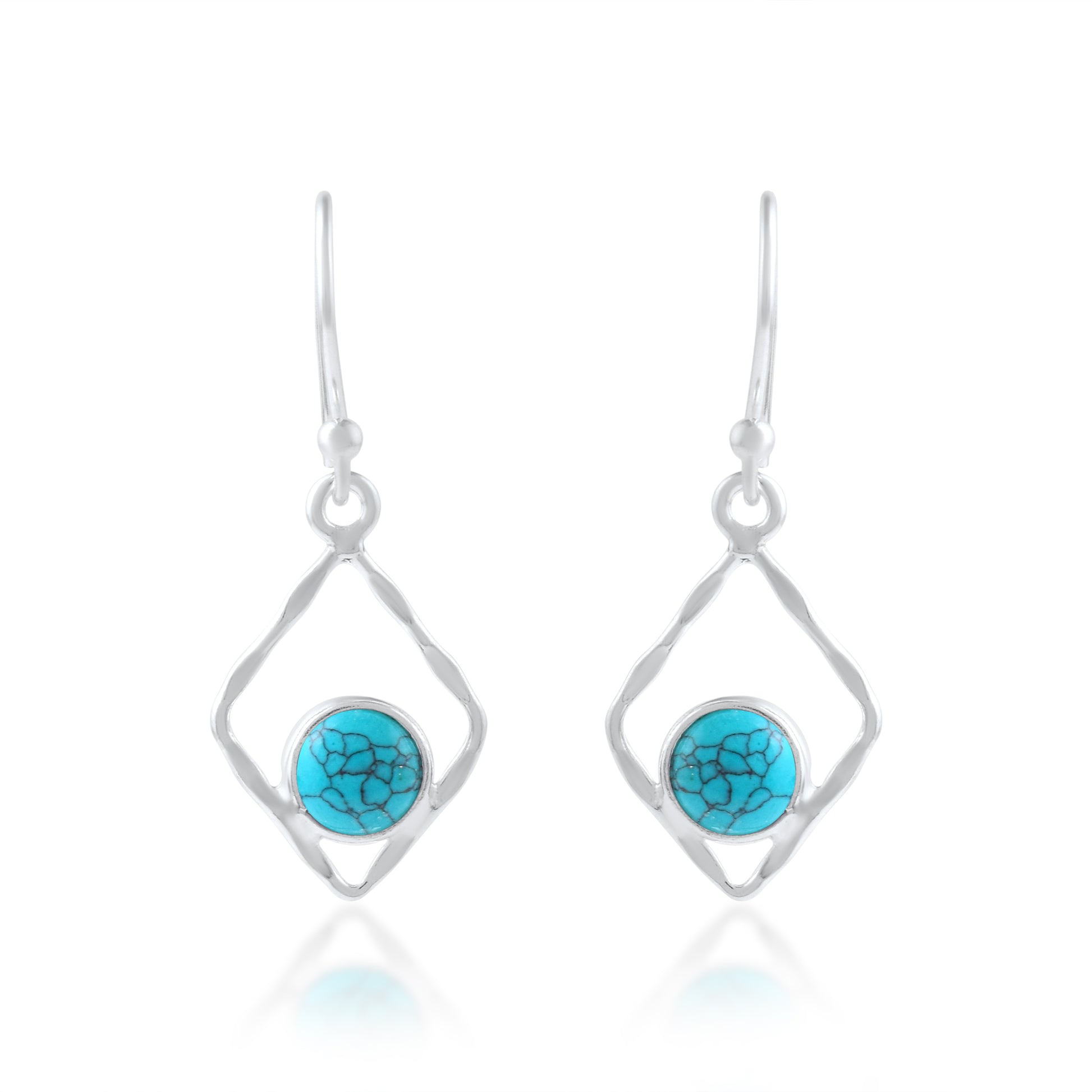 Modern Turquoise Rhombus Silver Earrings