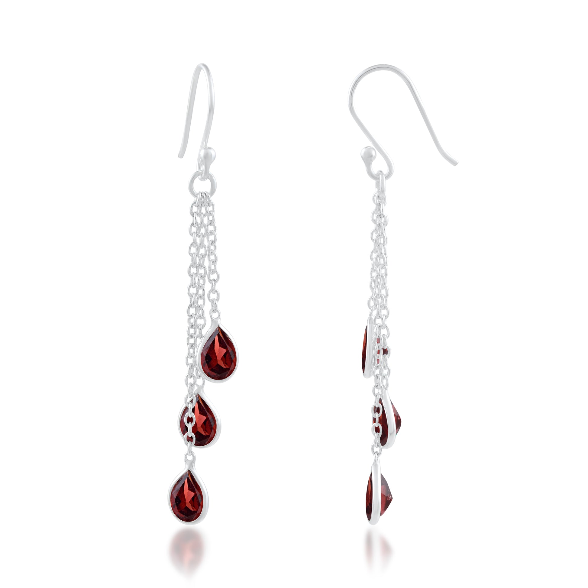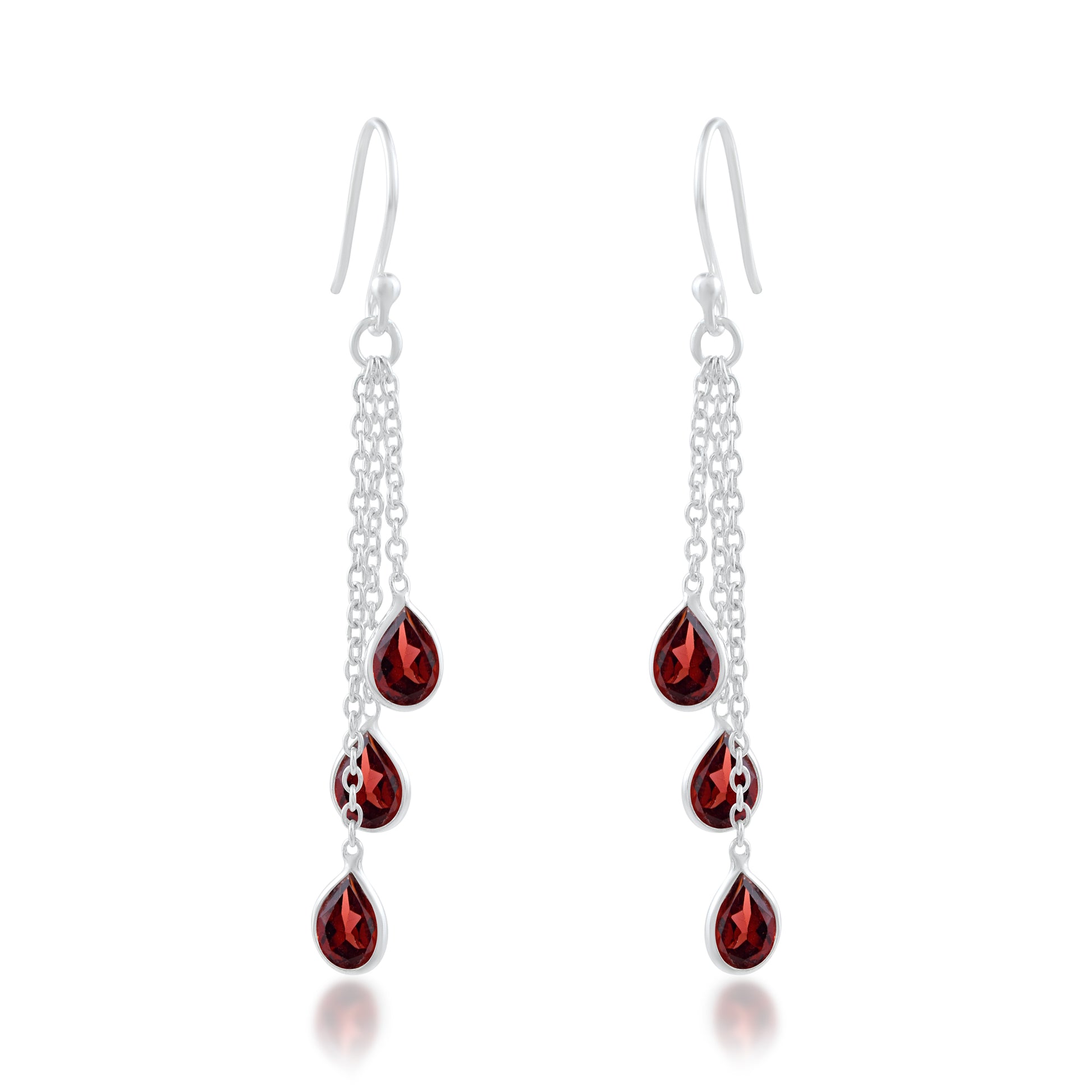 Natural Garnet Silver Multi-Chain Earrings