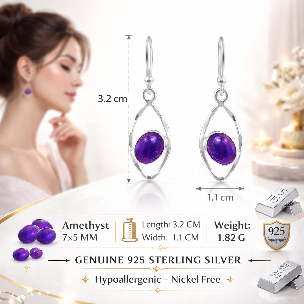Purple Amethyst Dangle Silver Earrings