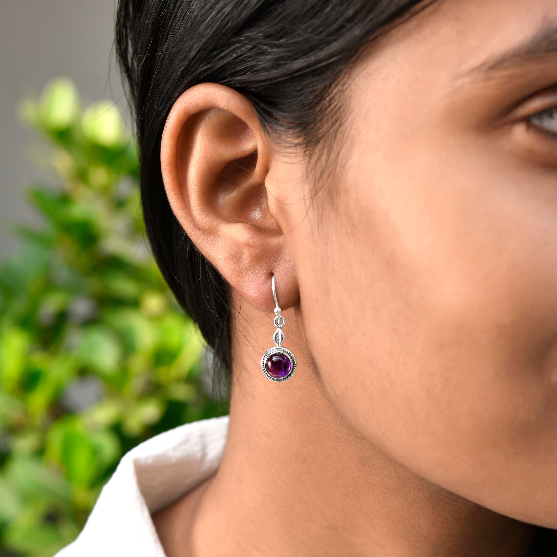 Purple Amethyst Silver Dangle Earrings