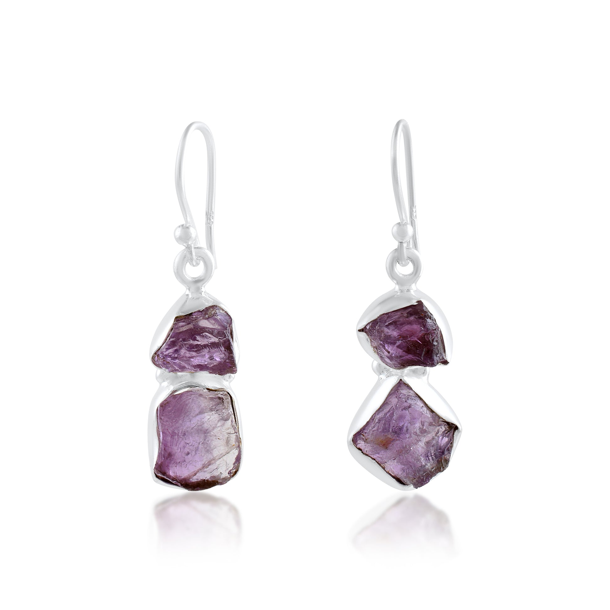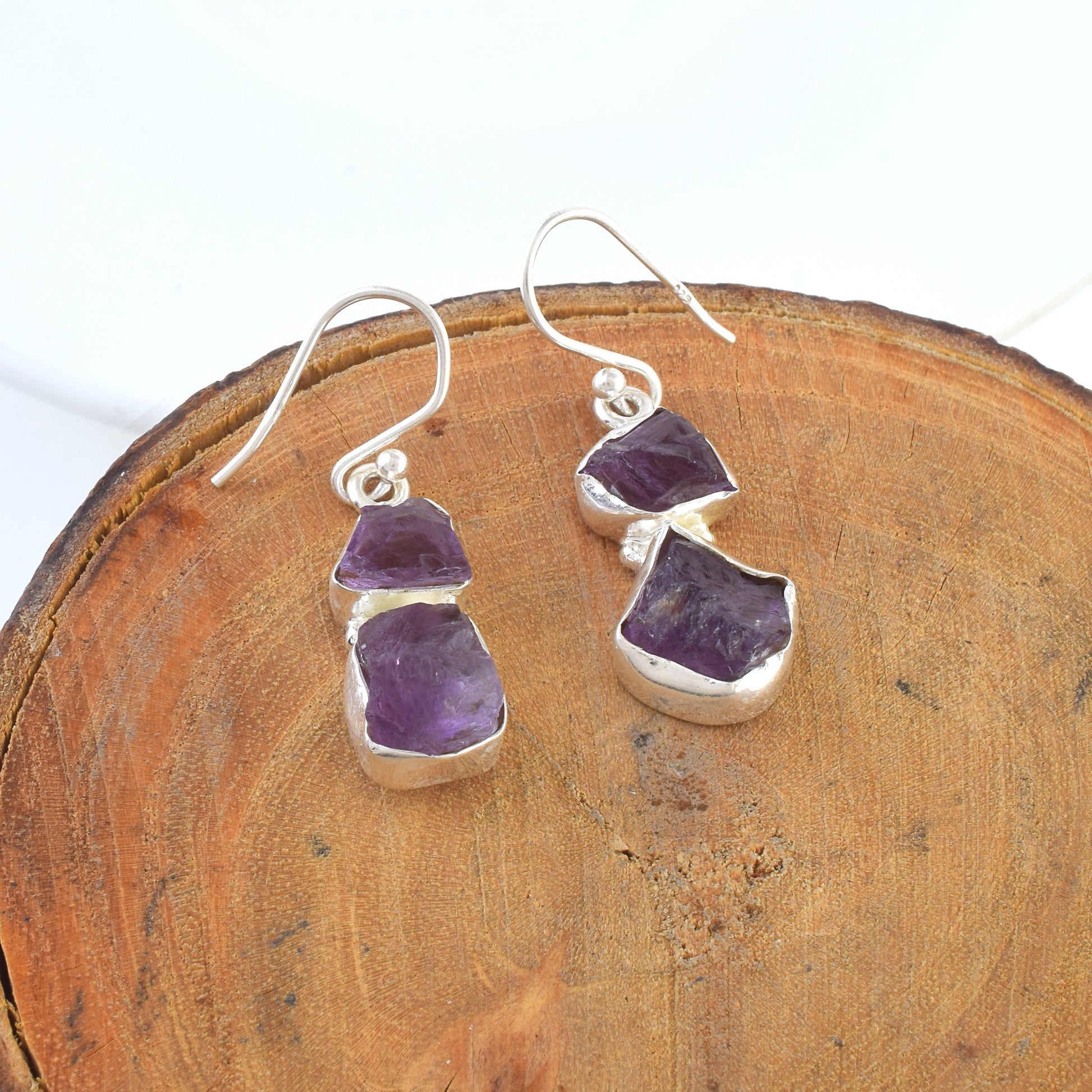 Purple Raw Crystal Silver Dangle Earrings