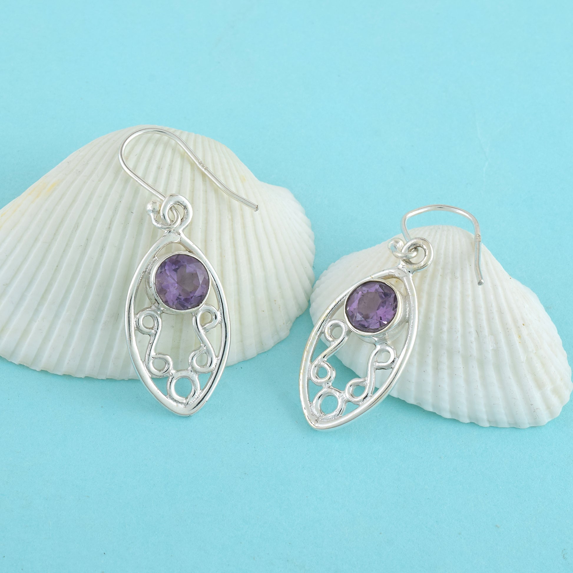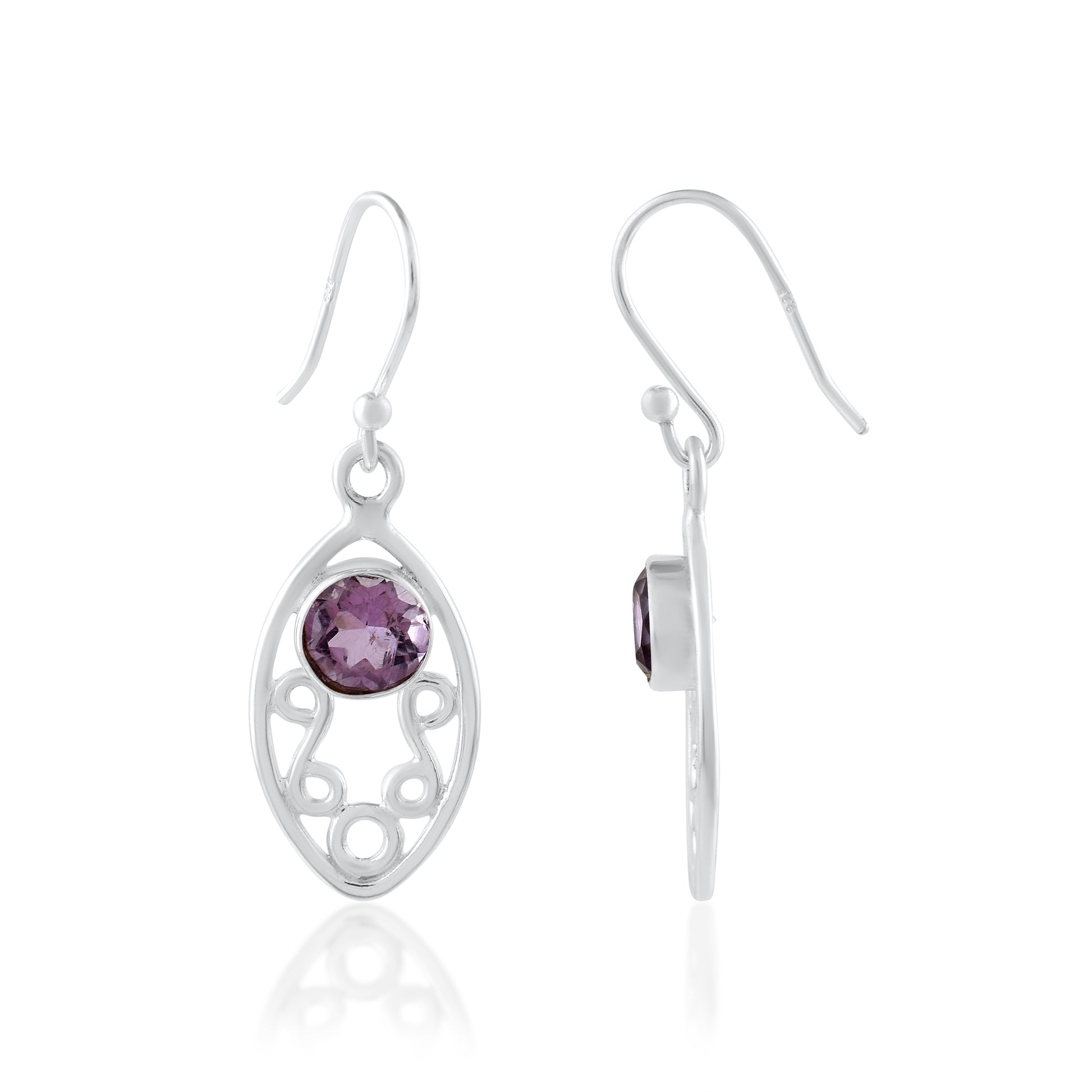 Purple Stone Oval Silver Dangle Earrings