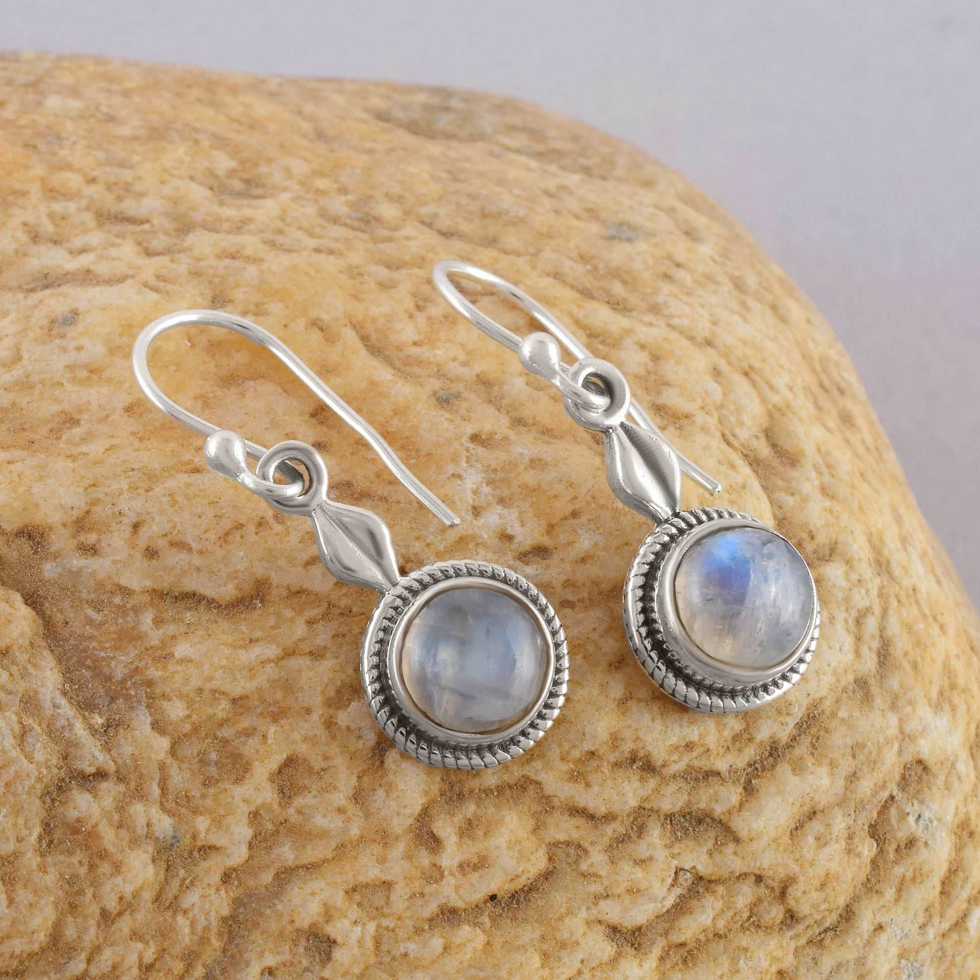 Rainbow Moonstone Silver Dangle Earrings