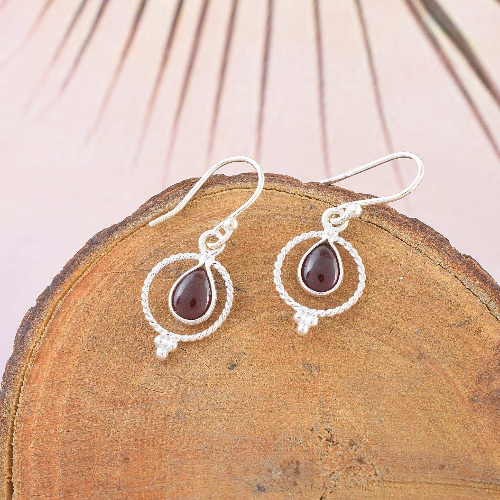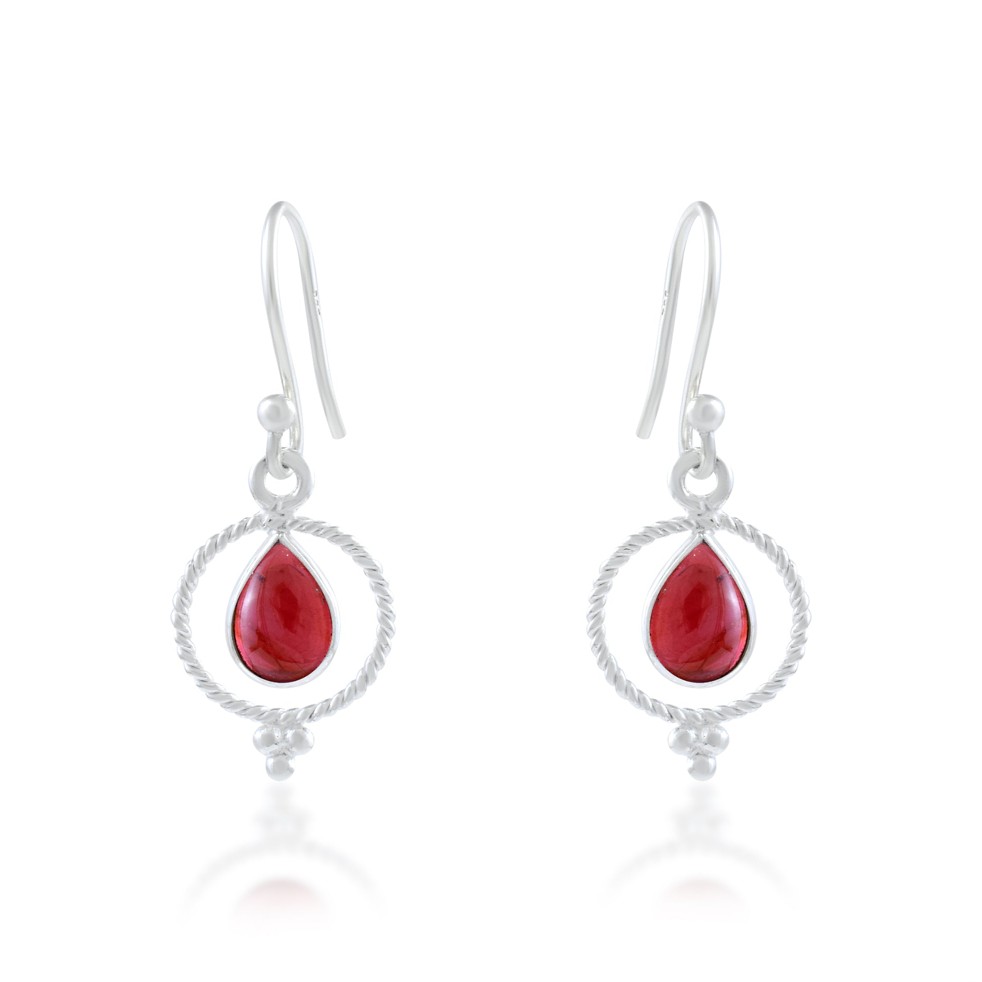 Red Garnet Twisted Circle Teardrop Dangles