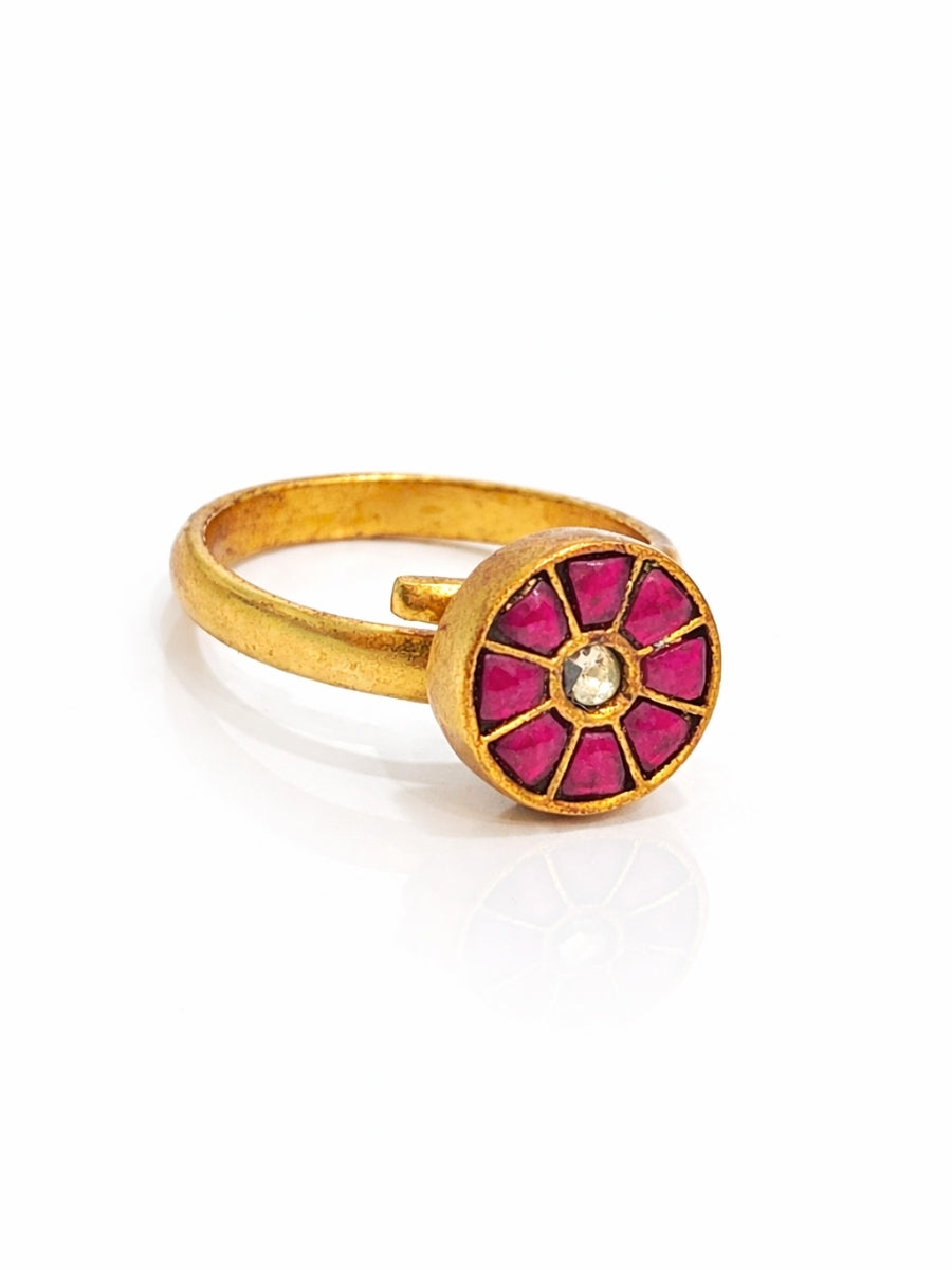 Round Pink Kundan Floral Ring