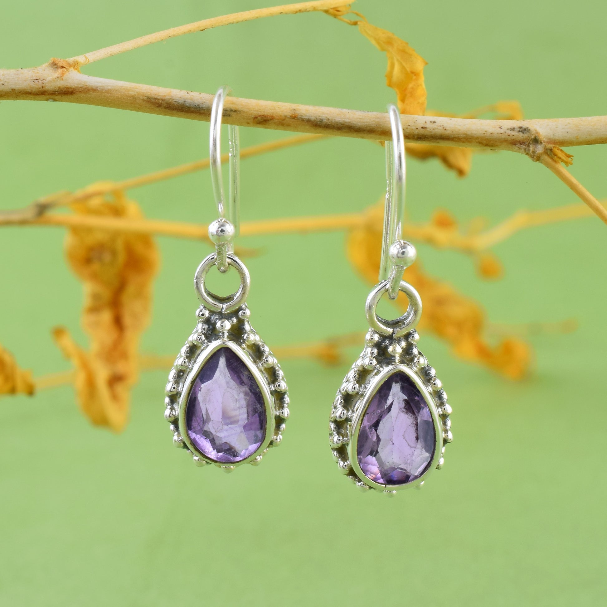 Vintage Amethyst Silver Dangle Earrings